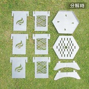 六角形構造のはめ込み組み立て式の焚き火台です。